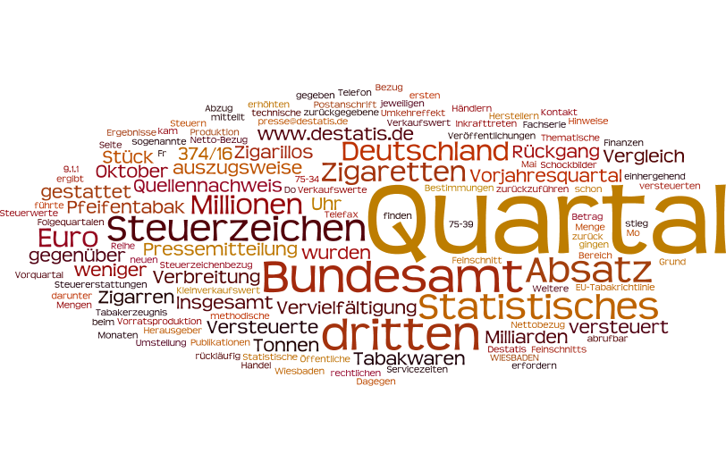 Wie das Statistische Bundesamt mitteilt ist der Absatz von Zigaretten weiter rückläufig.