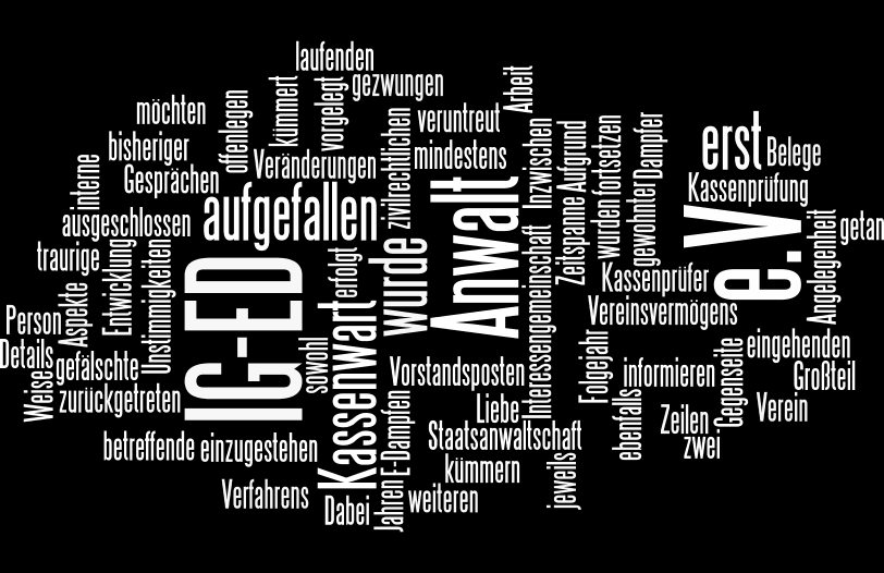 Der Kassenwart ist nach eingehenden Gesprächen von seinem Vorstandsposten zurückgetreten. Die betreffende Person wurde aus der IG-ED ausgeschlossen.