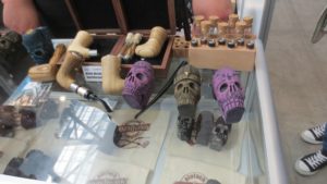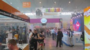 Durch die große Messehalle waren alle Stände auch schön mit Platz nach rechts und links aufgebaut. Die dampfenden Besucher konnten durch die breiten Gänge wunderbar hindurch und es gab nicht das Gefühl von Platzangst. Viele Aussteller haben in diesem Jahr auch geklotzt statt gekleckert und echt viel Arbeit und sicherlich auch Geld in großzügige Messestände investiert. Alles was in der Dampferszene Rang und Namen hat war anwesend und ich war erst einmal etwas überfordert mit der Orientierung. Gefallen hat mir persönlich auch das Catering, d.h. es gab in der Halle mehrere „Inseln“ an welchen man sich mit Getränke eindecken konnte. So war man nicht gezwungen an die jeweiligen Hauptcateringstellen am Rander der Halle zu wandern. Nur für den Toilettengang war es notwendig 😉 Die Belüftung war ebenfalls top. Wenn ich überlege was dort gedampft wurde konnte man erstaunlich gut noch sehen 🙂