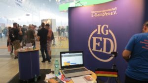 Ein Besuch am Stand der IG-ED ist natürlich Pflicht gewesen, denn die Mitglieder der Verbrauchervertretung investieren viel Freizeit um an dem Thema Aufklärung zur E-Dampfe zu arbeiten.