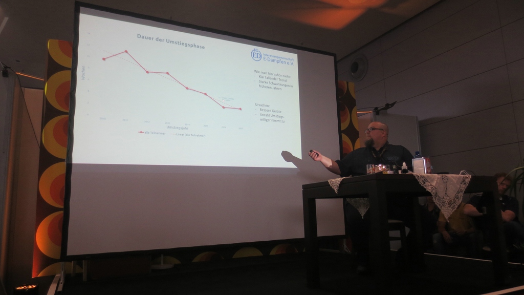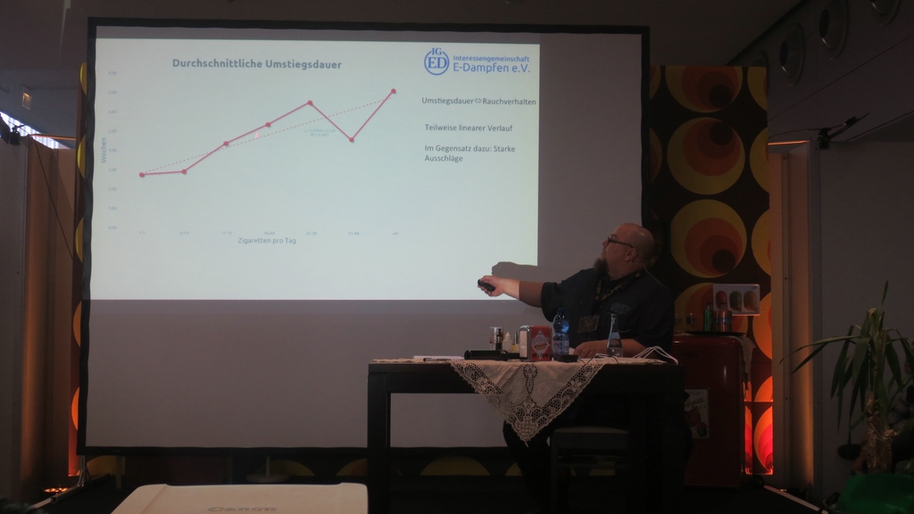 Die Interessengemeinschaft E-Dampfen e.V. hat einen Vortrag über ein Ergebnis aus der Dampferumfrage gemacht, aus welcher eine Nikotinempfehlung und ein Umstiegsrechner für Raucher, welche auf das Dampfen umsteigen wollen, entwickelt werden konnte.