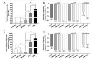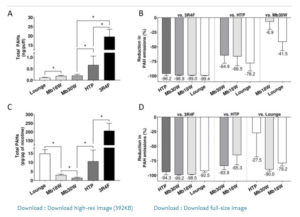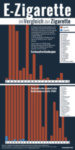 Ein ähnliches Bild ergibt sich auch bei der Messung der Polyzyklischen aromatischen Kohlenwasserstoffe (PAH/PAK). Tabakerhitzer emittieren 96,2% (0,7 ng/Zug) weniger als die Referenzzigarette mit (19,6ng/Zug), E-Dampfprodukte wiederum bis 78,2% weniger als Tabakerhitzer.