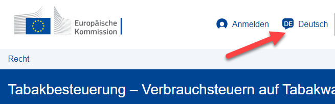 - Die Sprache kann oben auf der Seite auf Deutsch eingestellt werden