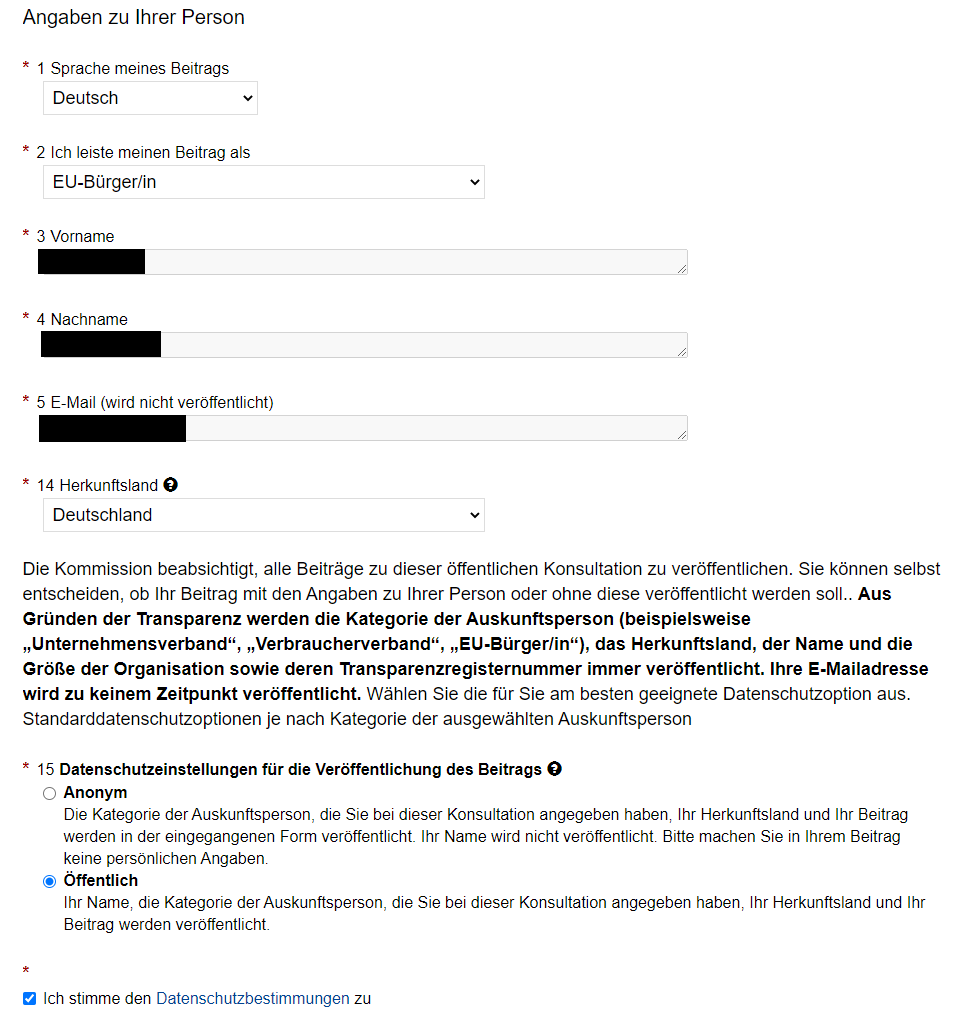 Die Seite der Konsultation ist über den folgenden Link zu erreichen: