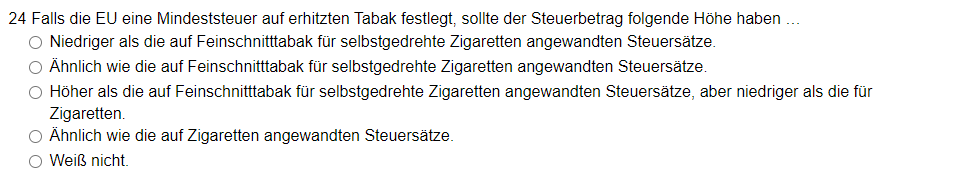 - Fragen Nr. 17 bis Nr. 22 sind bezüglich Tabakprodukten