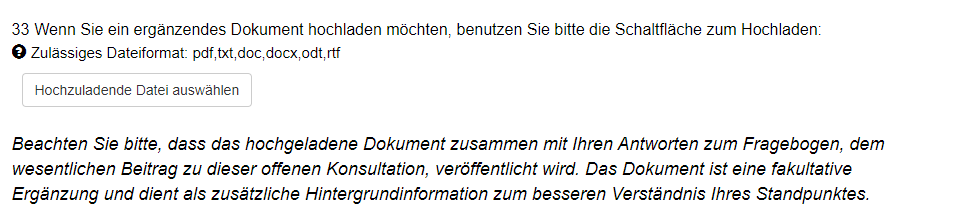 - Bei Punkt 33 ist es möglich eigene verfasste Stellungnahmen/Kommentare zu den Steuerplänen der EU-Kommission hochzuladen.