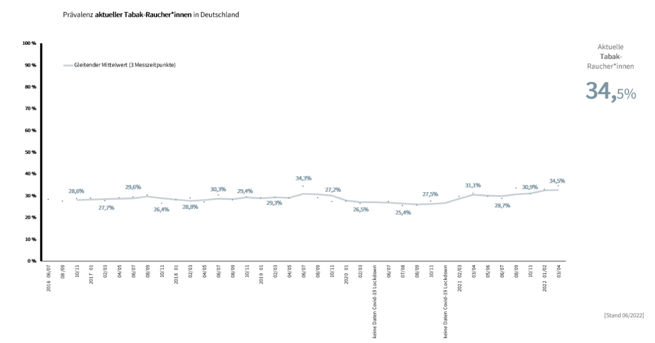 Beispielweise wurde die dpa Meldung auch in der ÄrzteZeitung veröffentlicht, „Zahl der Raucher in Deutschland seit Beginn der Corona-Pandemie deutlich gestiegen“ 1. Darin wird bezuggenommen auf die Veröffentlichung zur aktuellen Rauchprävalenz in Deutschland, welche mit Beginn der „Coronakrise“ stark zugenommen hat.