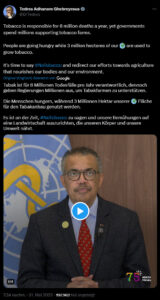An dieser Stelle verweise ich auf die Antwort von Clive Bates, “World Health Organisation exploits tobacco farmers, the hungry, sick and poor in its crude activism – Weltgesundheitsorganisation beutet Tabakbauern, Hungernde, Kranke und Arme für ihren plumpen Aktivismus aus” 1. Clive Bates zerlegt darin die Propaganda der WHO rund um den Tabakanbau. Eine Einschränkung oder Verbot des Tabakanbaus hätte noch mehr Elend zur Folge. Auch hier zeigt sich, die WHO hilft nicht, sie zerstört mit ihrer Ideologie die Lebensgrundlage vieler Menschen.