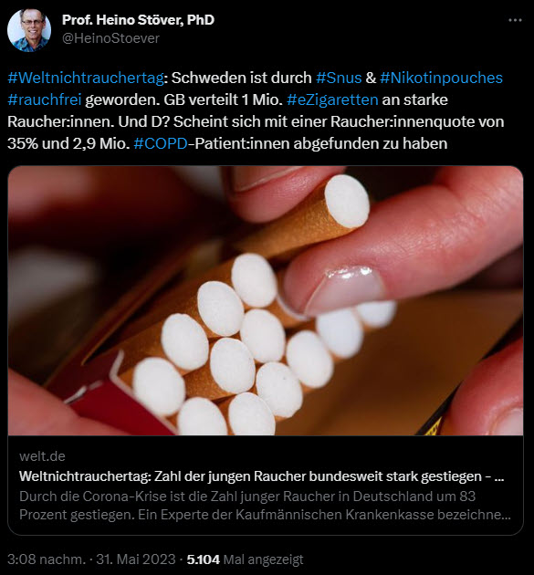 Und wie äußert sich der Präsident der DGP? Anlässlich des Weltnichtrauchertags?